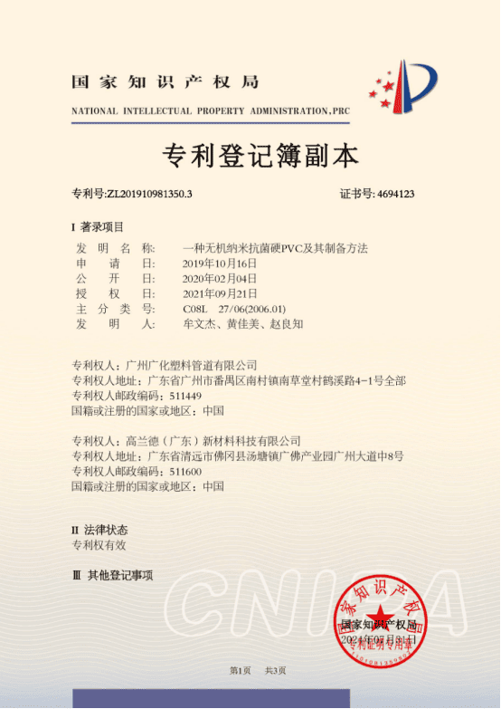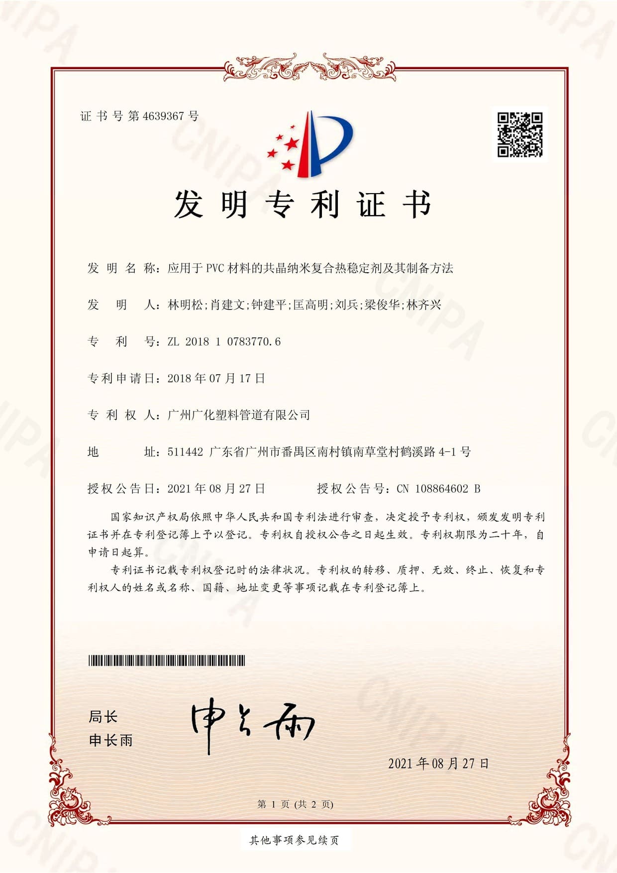 同时,公司也是华南理工大学聚合物新型成型装备国家工程研究中心科技成果转化基地及产学研结合示范基地,双方联合建设广州广化塑料管道有限公司技术中心。